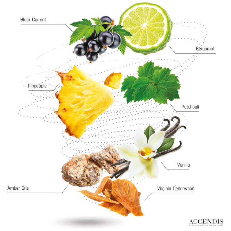 - Notes de cœur : ananas, patchouli